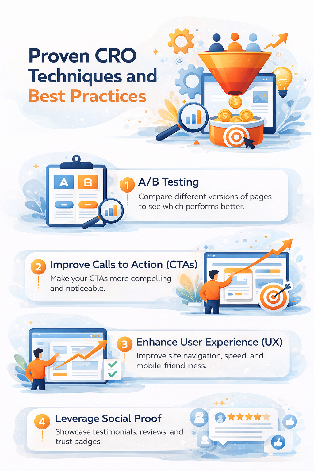 User experience (UX) is central to CRO. A smooth, enjoyable journey encourages visitors to take action. Key tactics include: